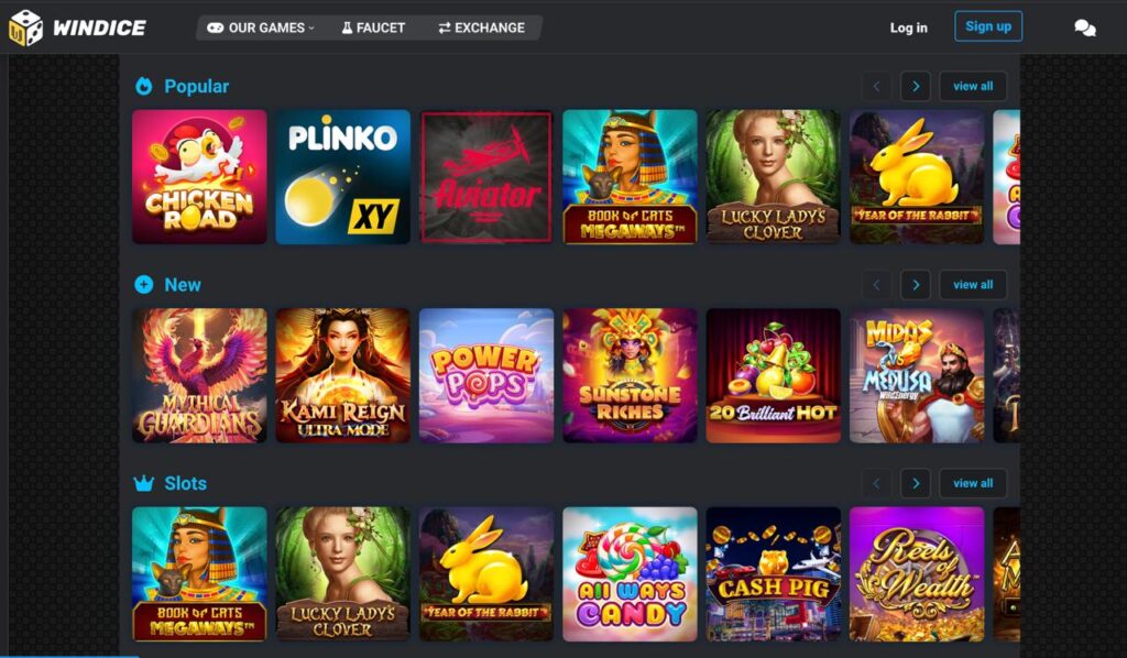 WinDice originals are built with provably fair technology, allowing players to verify each outcome independently. These games are fast, transparent, and perfectly suited for crypto gameplay. Dice‑based games, crash‑style mechanics, and instant win formats are particularly popular, as they offer short rounds and clear risk control.